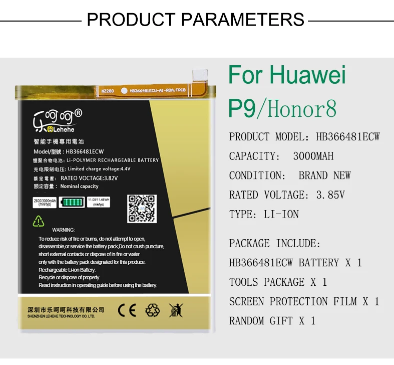 Product Name: Bateria LEHEHE HB366481ECW dla Huawei P9 Ascend P9 Lite G9 Honor 8 5C G9 P10 Lite P20 Lite bateria z narzędziami gify