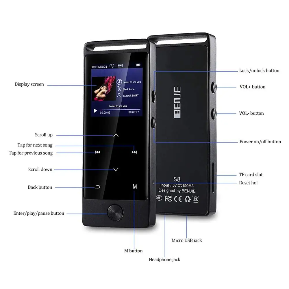 Product Name: Odtwarzacz MP3 Bluetooth oryginalny przycisk dotykowy BENJIE S8 Metal APE WAV wysoka jakość dźwięku podstawowy bezstratny odtwarzacz muzyki z FM