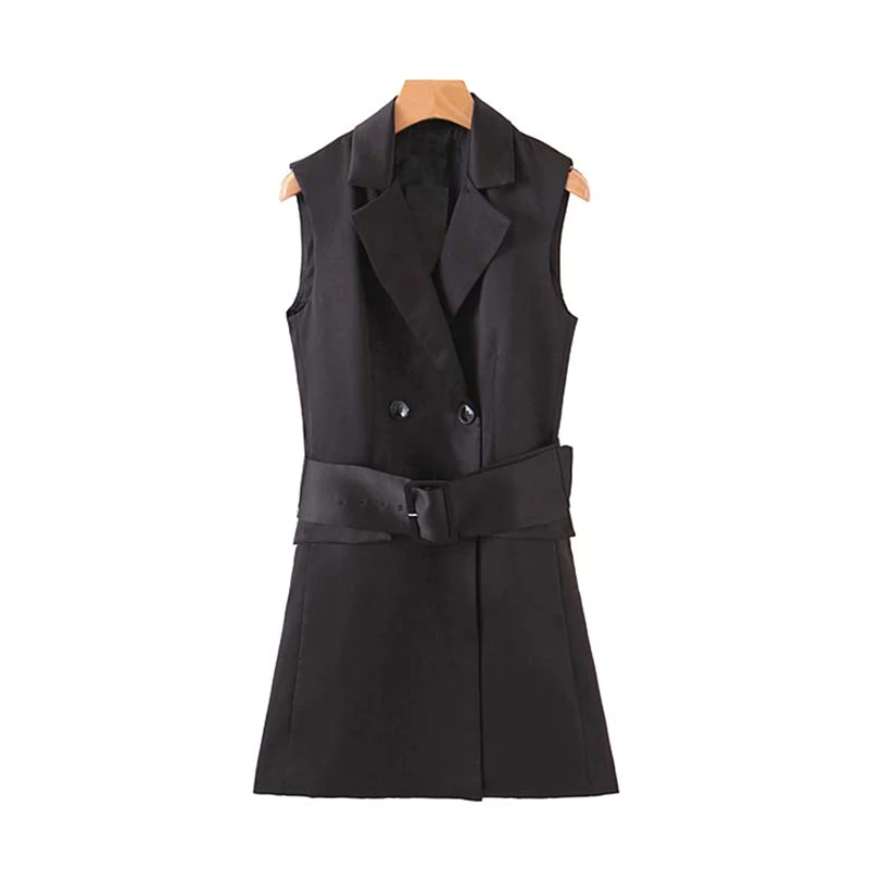 Product Name: Vintage stylowe podwójne piersi biuro pani kamizelka kobiet 2019 moda karbowany kołnierz z paskiem kamizelki odzieży kamizelki Chaleco Mujer