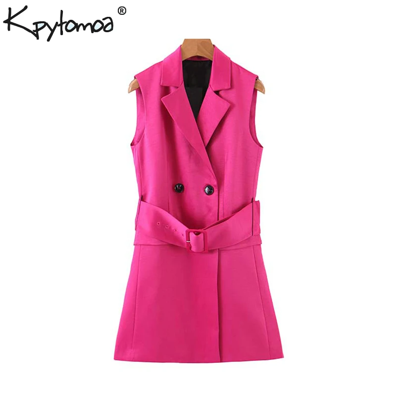. (Zniżka 40%) Tanie Vintage stylowe podwójne piersi biuro pani kamizelka kobiet 2019 moda karbowany kołnierz z paskiem kamizelki odzieży kamizelki Chaleco Mujer Cena.