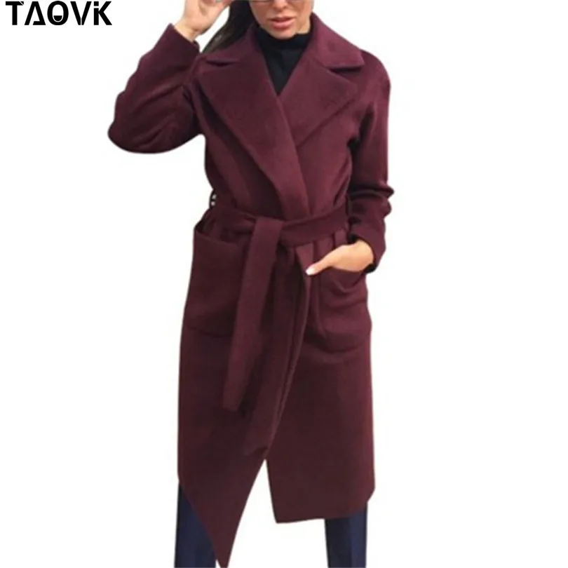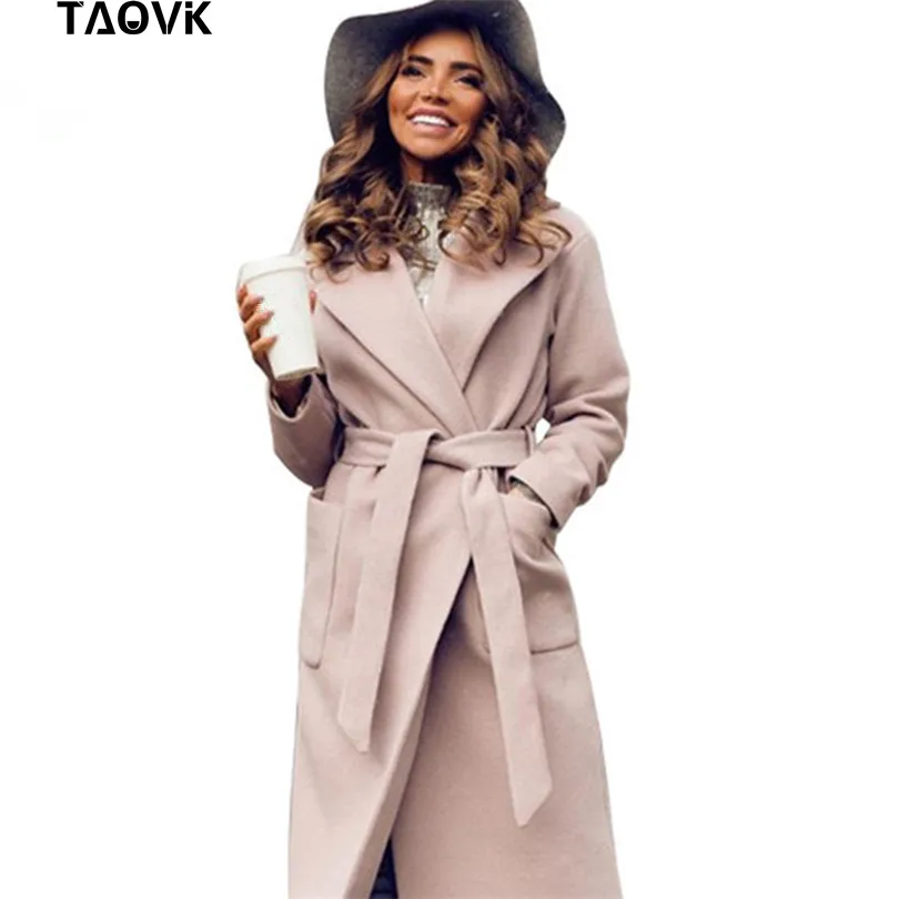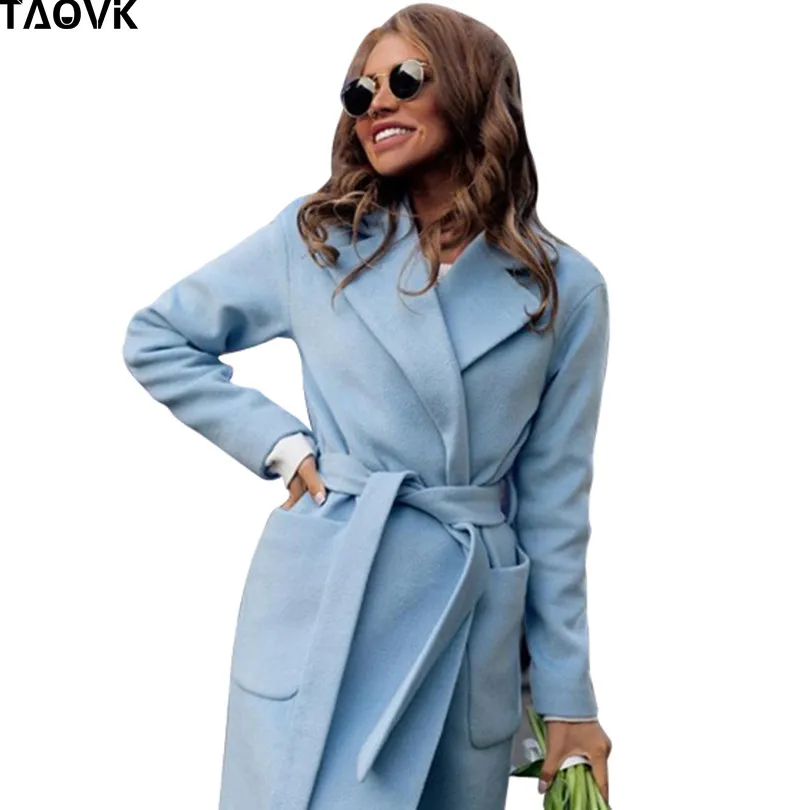 Special Offer TAOVK damskie kurtki i płaszcze średni długi pas wełna i płaszcz z mieszanki skręcić w dół kołnierz jednokolorowe kieszenie Parka Discount 43% Today!