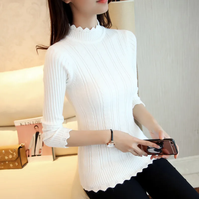 Product Name: OHCLOTHIN 2019 nowych moda pół koreański kobiety sweter z dzianiny szczupła płatek kołnierz koszula elastyczna wykańczający golfem skręcają swetry