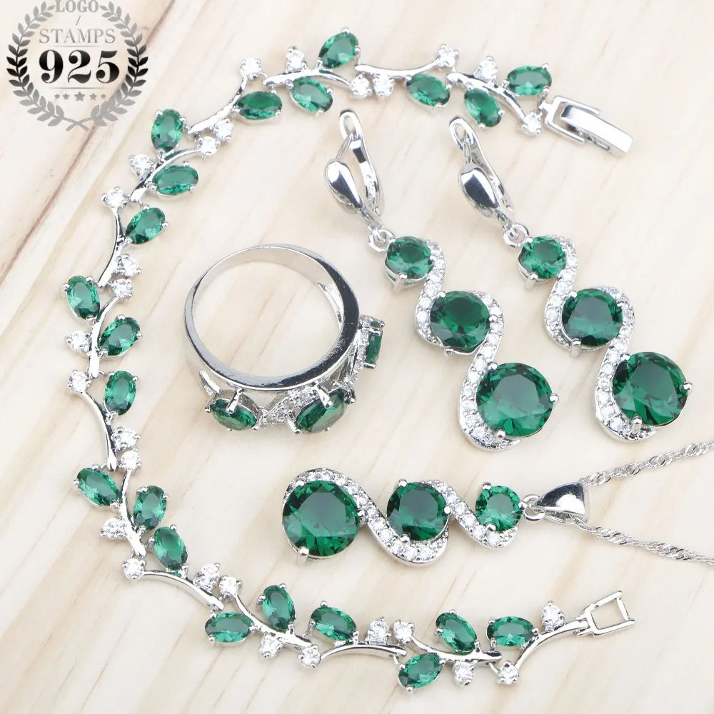 Special Offer Zielone kamienie biały cyrkon kobiety srebro 925 biżuteria ustawia kolczyki wisiorek naszyjnik pierścionki bransoletki dla zestaw dla nowożeńców darmo Box Discount 33% Today!