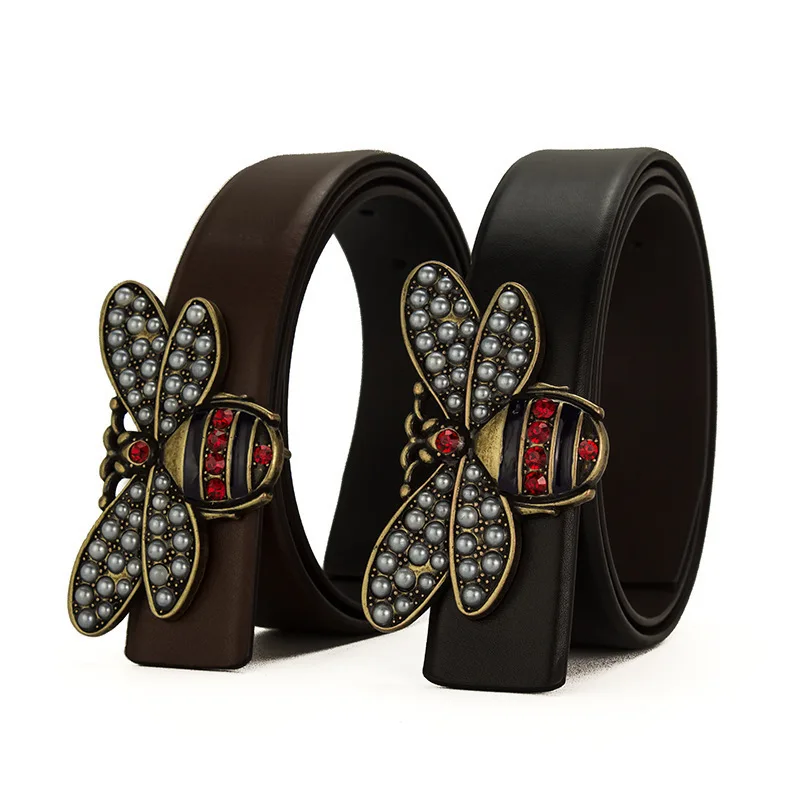 Product Name: 2018 szeroka skóra bydlęca mała pszczoła klamra nit pas dla kobiet najwyższa jakość gładka klamra skórzany pasek damski Ceinture