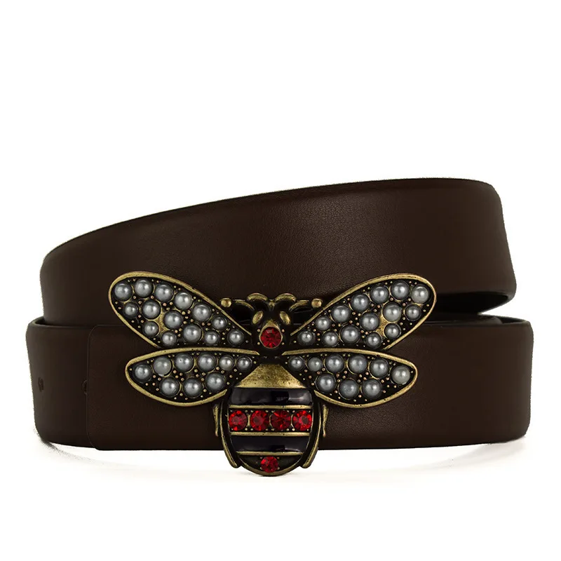 Special Offer 2018 szeroka skóra bydlęca mała pszczoła klamra nit pas dla kobiet najwyższa jakość gładka klamra skórzany pasek damski Ceinture Discount 35% Today!