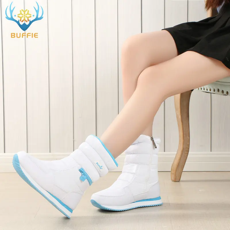. (Zniżka 39%) Skup Buty zimowe damskie ciepłe buty śnieg boot 30% z naturalnej wełny obuwie biały kolor BUFFIE 2019 duży rozmiar zamek w połowie łydki darmowa wysyłka Najtaniej Cena.