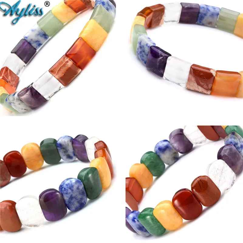 Special Offer Ayliss 1pc nowy Tumble Gem Stone 7 bransoletka Chakra Reiki równoważenie uzdrowienie biżuteria 10mm koraliki męskie Stretch kamień naturalny bransoletka Discount 47% Today!