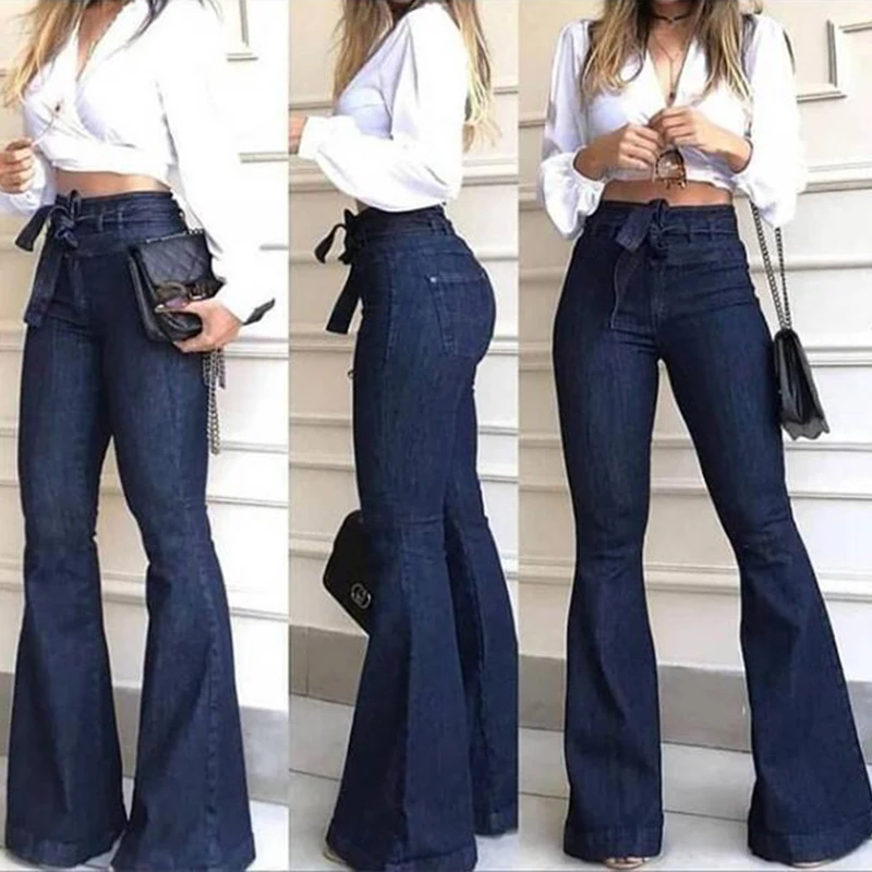 Special Offer Skinny wysokiej talii spodnie jeansowe damskie spodnie flare Street Style niebieskie seksowne spodnie w stylu Vintage damskie spodnie dzwony Bell Bottom Jeans Fall Discount 51% Today!