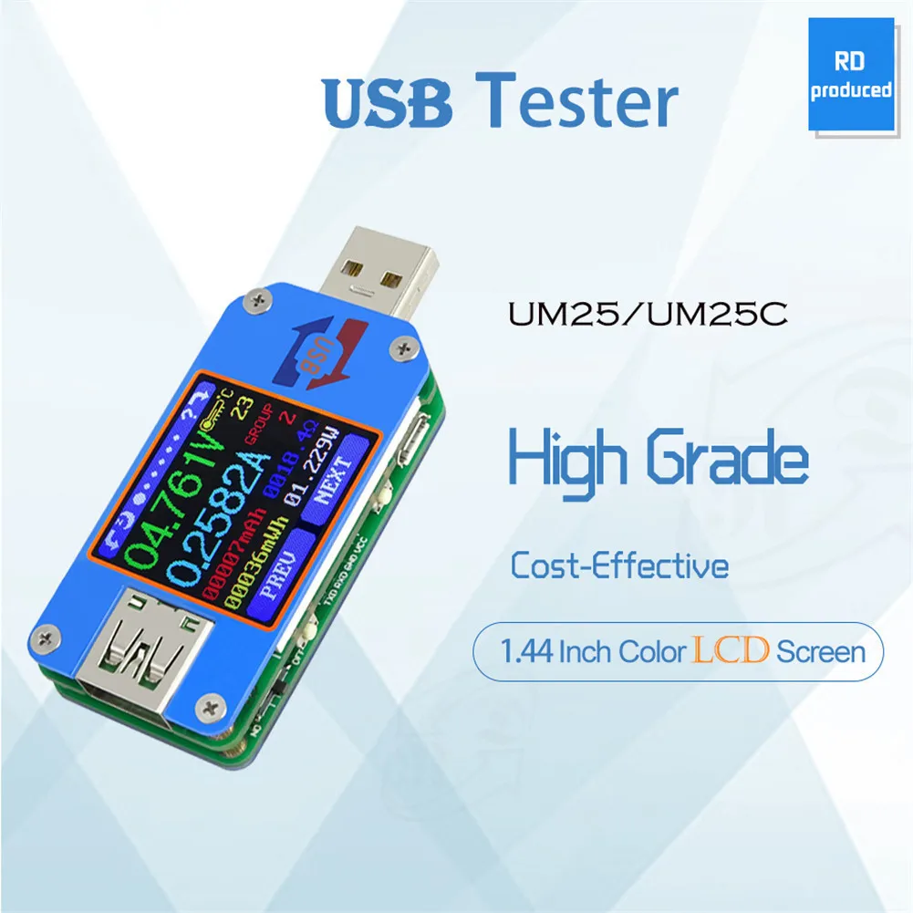 . (Zniżka 20%) Skup Nowy UM25C UM25 USB 2.0 type c kolor tester lcd miernik napięcia prądu woltomierz amperomierz ładowanie akumulatora pomiar rezystancja kabla Najtaniej Cena.