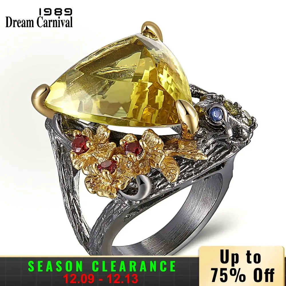 . (Zniżka 30%) Skup DreamCarnival 1989 Chic biżuteria pierścień duży złoty trójkąt cyrkon czerwone kwiaty obrączki Drop Shipping Hot Pick WA11658 Najtaniej Cena.