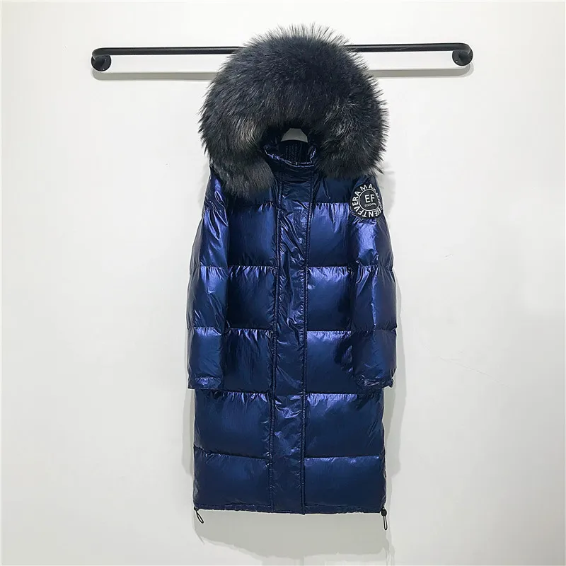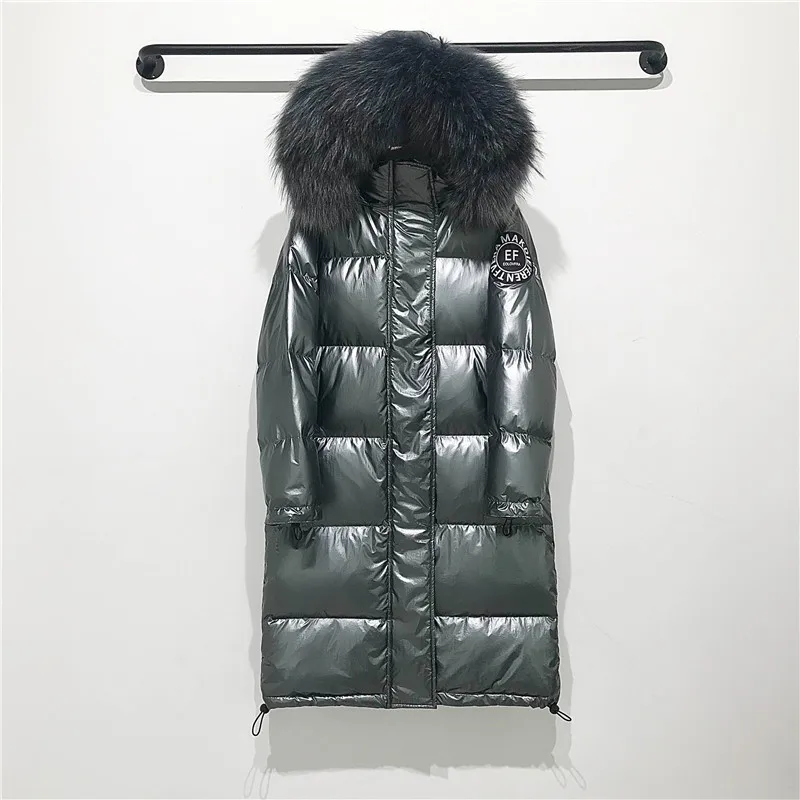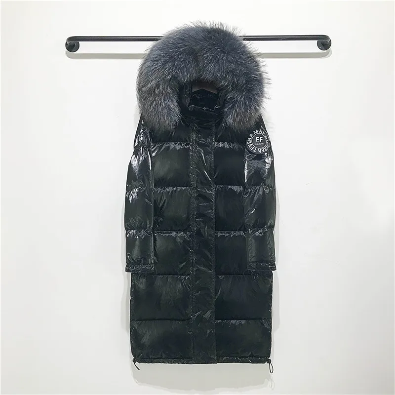 . (Zniżka 35%) Skup Duże prawdziwe kołnierz z futra szopa 2019 z kapturem zimowa kurtka kobiety długi biały parka z kaczym puchem płaszcz kobiet luźny, gruby ciepła odzież wierzchnia Najtaniej Ceny.