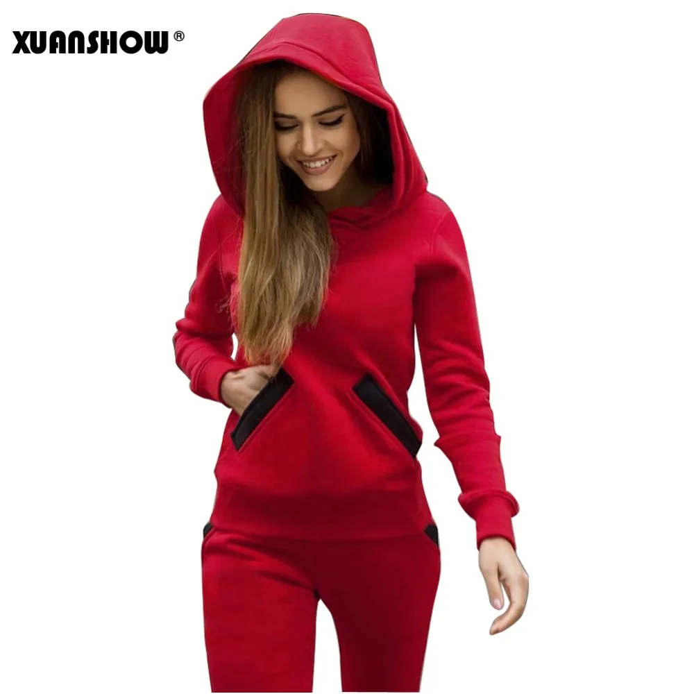 . (Zniżka 43%) Skup XUANSHOW 2019 moda jesień zima kobiety dresy stroje Big Hat bluzy + Slim pełne spodnie 2 sztuka zestaw kieszenie zestaw damski Najtaniej Ceny.