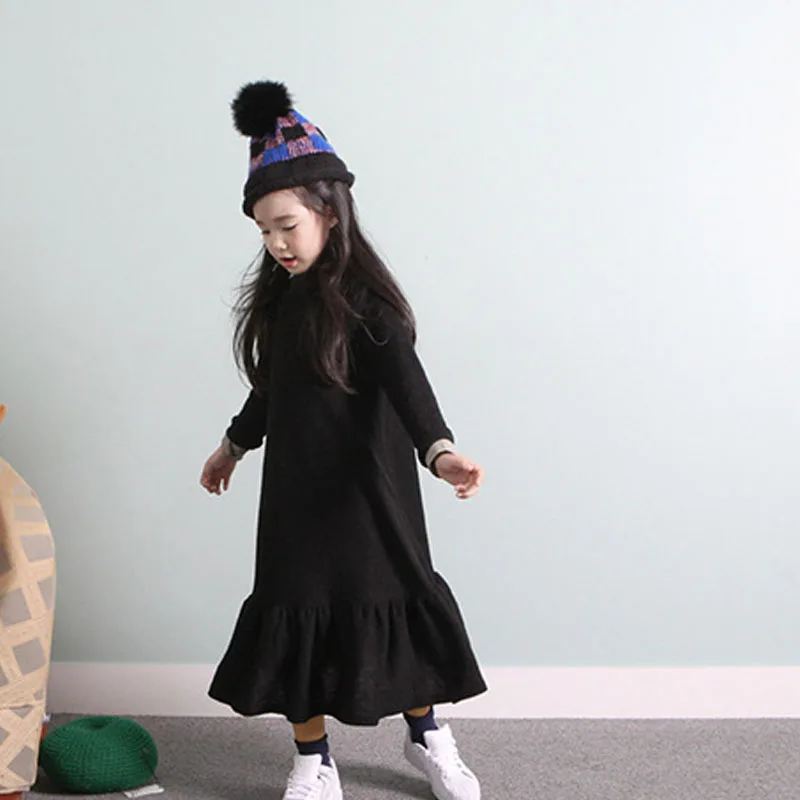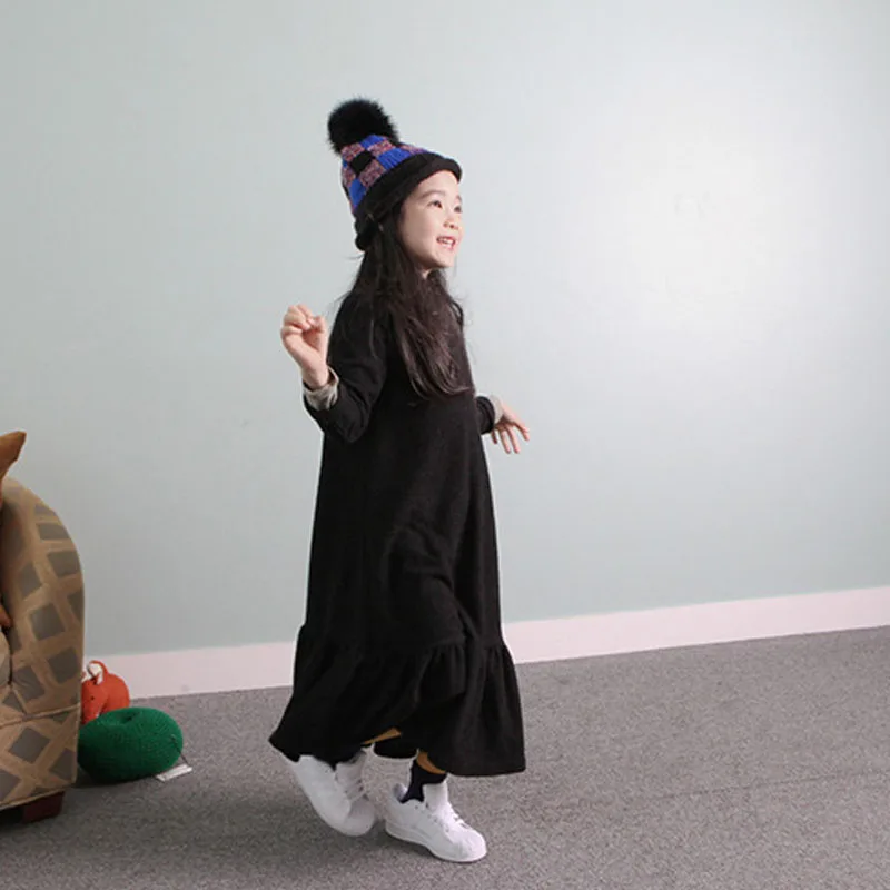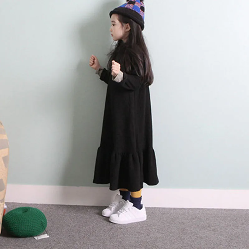 Product Name: Jesień ciepłe dziewczyny ubierają 2018 zima aksamitna gruby czarny luźne długie sukienki dzieci Party księżniczka Vestidos Maxi duże dzieci ubrania