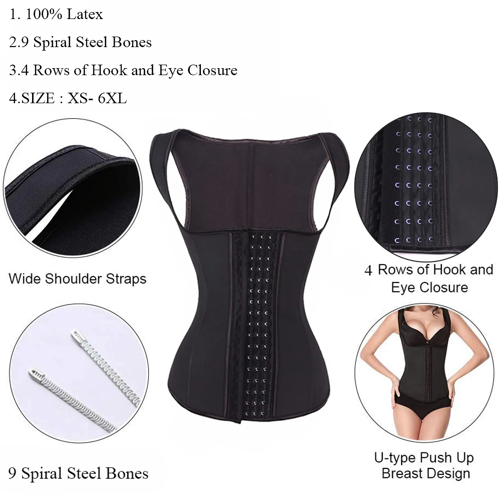 Product Name: HEXIN czarny 4 rzędy haki lateksowy pas wyszczuplający do talii urządzenie do modelowania sylwetki stalowy kość gorset kamizelka wyszczuplająca gorset waist trainer Plus rozmiar pas napinający
