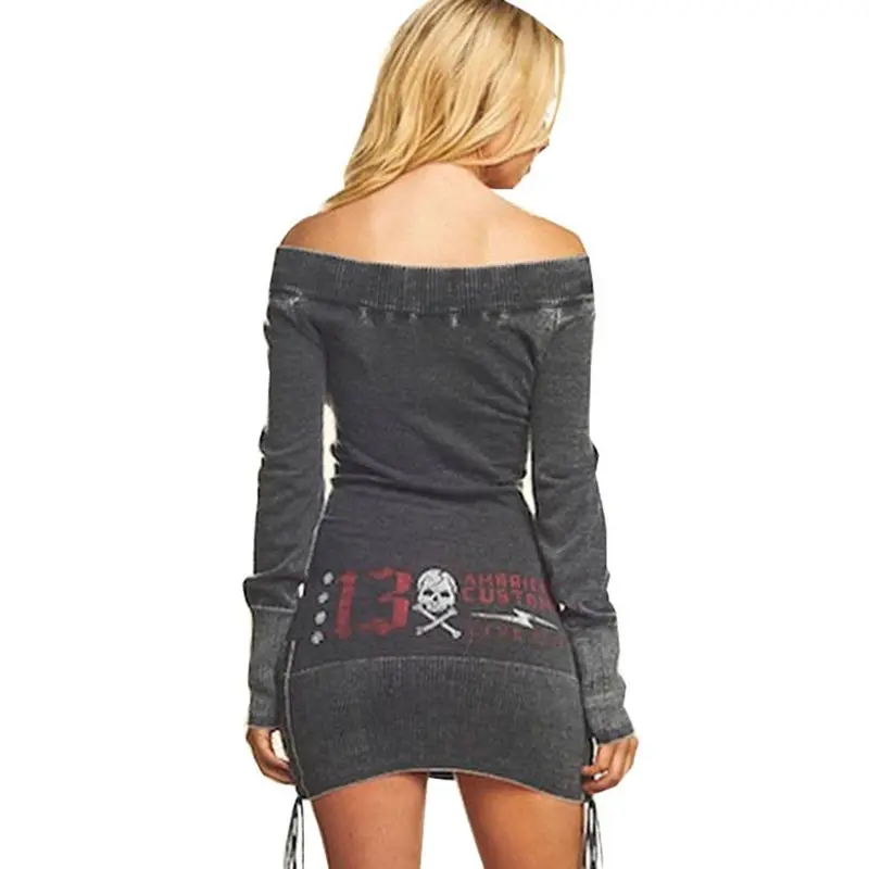 Product Name: Lato Sexy klub Punk Gothic Hip Hop duży rozmiar 5XL kobiety ołówek suknie Bodycon Off Shoulder pismo czaszki druku kobiet goth sukienka
