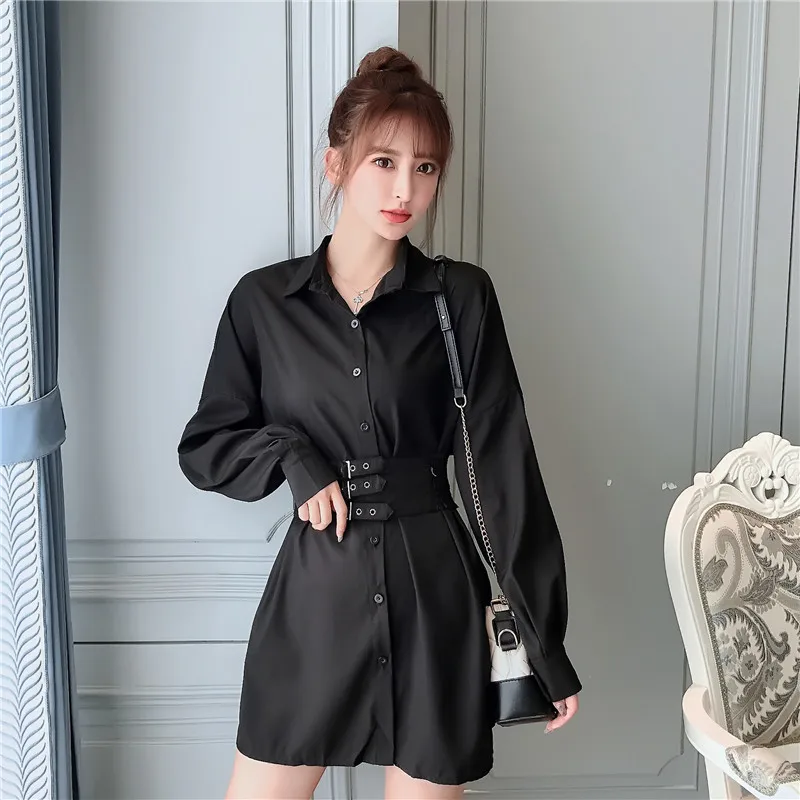 Product Name: 2019 moda czysta jesień panie z smukłe długie koszula z długim rękawem sukienki i dostosowane pasy