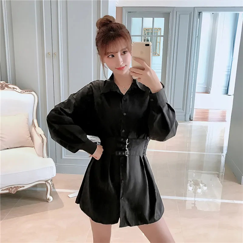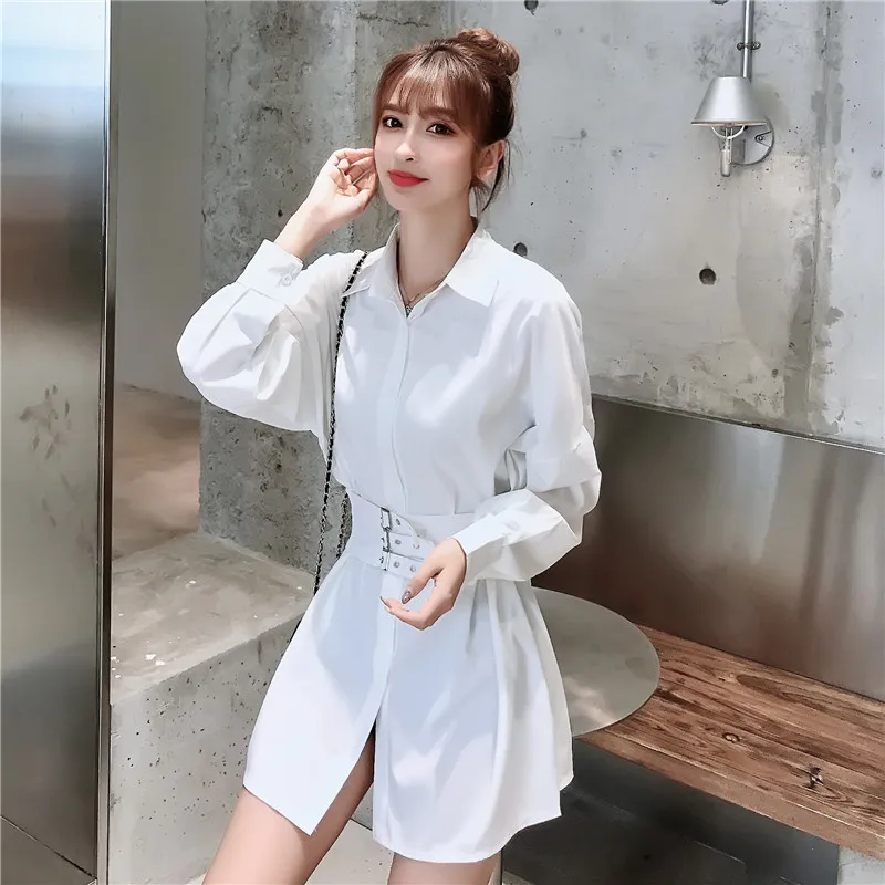 Special Offer 2019 moda czysta jesień panie z smukłe długie koszula z długim rękawem sukienki i dostosowane pasy Discount 0% Today!