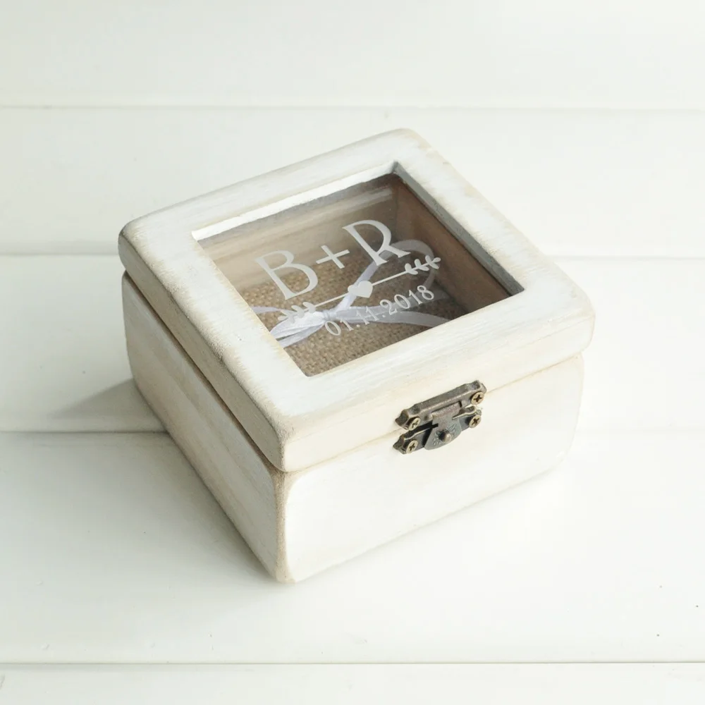 Special Offer Spersonalizowany ślub pudełko na pierścionek zaręczynowy pudełko ślub walentynki, prezent szkło sygnowane pudełko na pierścionek biały pierścionek poduszka Discount 0% Today!