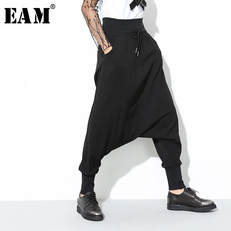 . (Zniżka 19%) Tanie [EAM] 2019 nowych moda wiosna czarna porządna kieszenie sznurkiem przyczynowe luźne duże rozmiary kobiet wysokiej talii spodnie Harem RA224 Cena.