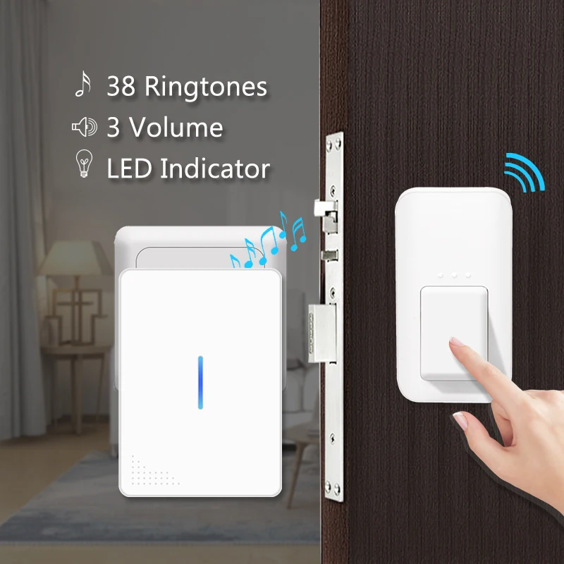 Product Name: AuGreener wodoodporny bez baterii potrzebujesz dzwonek 38 Melody domowy zdalny LED bezprzewodowy dzwonek do drzwi samoobsługowe dzwonki 1 2 odbiorniki