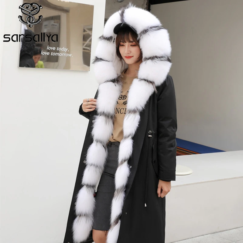 Special Offer Kurtka z futra lisa kaptur zimowe płaszcze damskie Parka długie moda prawdziwe Parka z futra dla pań ciepły gruby luźny płaszcz 2019 Big Size Discount 66% Today!