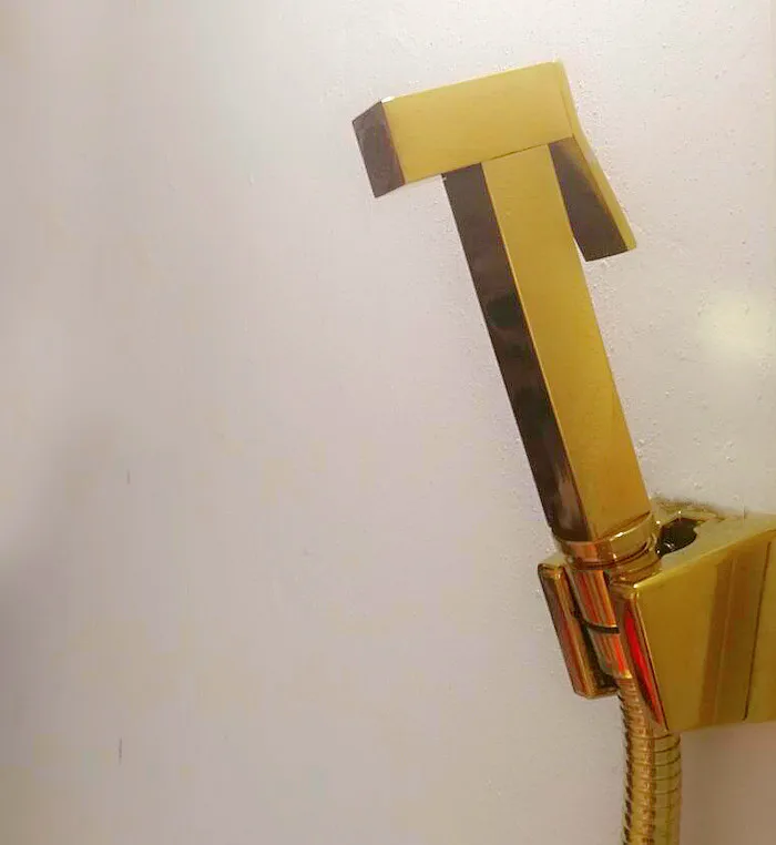 . (Zniżka 14%) Tanie Ręczny rączka bidetowa Douche zestaw toaletowy błyszczące złoto mosiądz plac Shattaf głowica prysznicowa miedzi zawór zestaw Jet Bidet kran GD12 Ceny.
