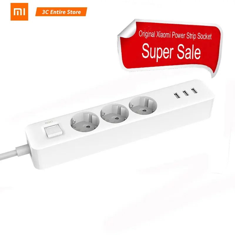 . (Zniżka 20%) Tanie New arrival oryginalny Xiaomi Mijia listwa zasilająca 3 gniazda 3 port USB duży przedłużacz z wtyczką Patch Board dla Home Office Global Ceny.