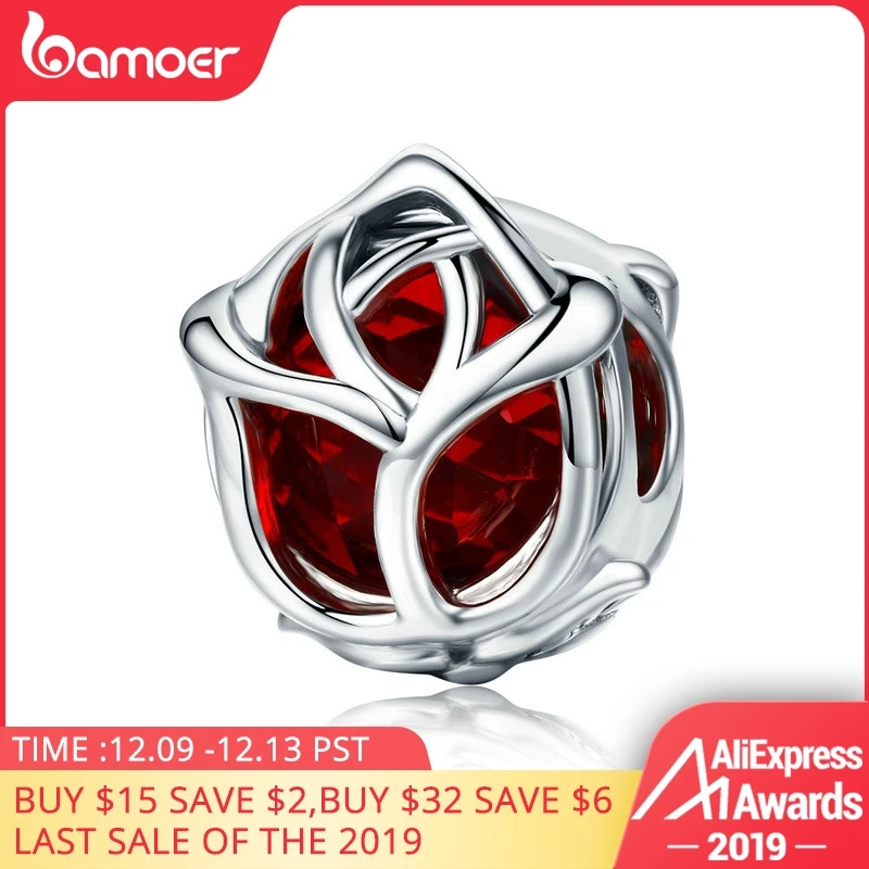 . (Zniżka 36%) Skup Tanie BAMOER romantyczny 100% 925 Sterling srebrna róża kwiat, czerwone kryształowe koraliki charms fit kobiety Charm bransoletka DIY tworzenia biżuterii SCC568 Cena.