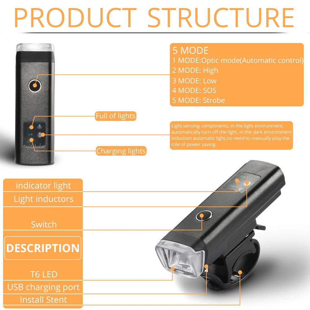 Product Name: 10000 lumenów przednie światła rowerowe indukcyjne światło rowerowe wbudowane 2000mAh USB ładowanie kolarstwo IPX6 wodoodporna latarka przedni reflektor do roweru