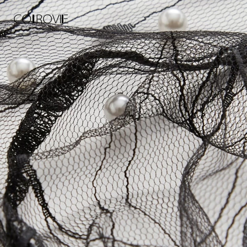 . (Zniżka 50%) Skup Tanie COLROVIE czarna perła frezowanie winorośli panel z siatki sukienka kobiety wzburzyć wokół szyi z długim rękawem Sexy Dress Party obcisła sukienka Cena.
