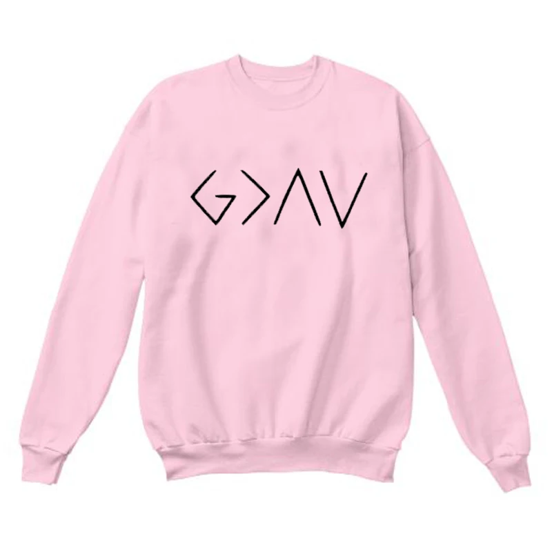 Product Name: Bóg jest większy niż wzloty i upadki kobiet bluza pełna rękaw wierzyć kobieta jezus Jumper Christian sweter Drop Shipping