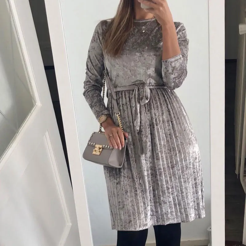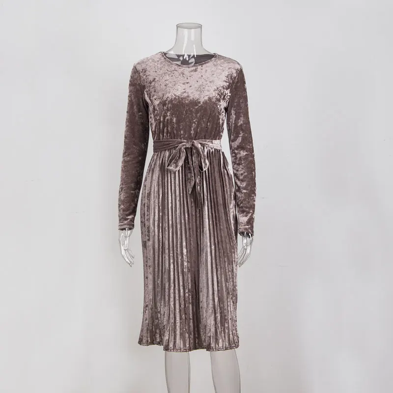 Product Name: Susi Rita Vintage z długim rękawem aksamitna sukienka kobiety 2019 Bodycon popędzający Midi sukienka wiosna plisowane sukienki na imprezy Vestidos Robe Femme