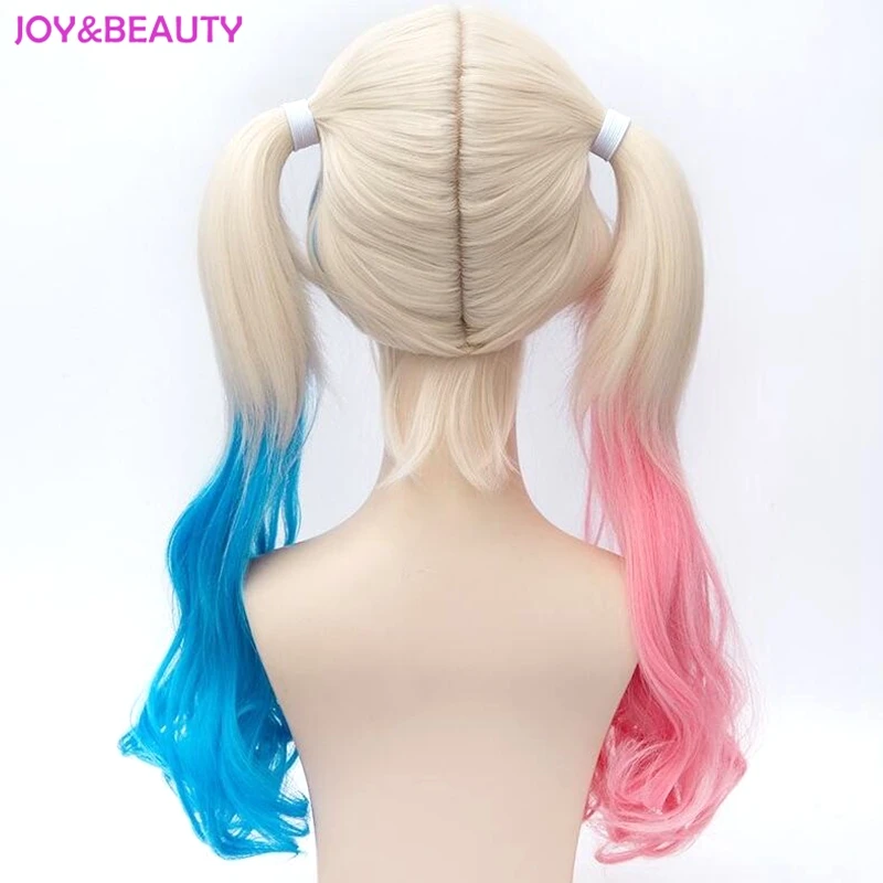 Product Name: Radość i uroda włosy Harley Quinn peruka do cosplay w stylu falowane syntetyczne kucyk peruka wysokiej temperatury włókna Cos peruka darmowa wysyłka