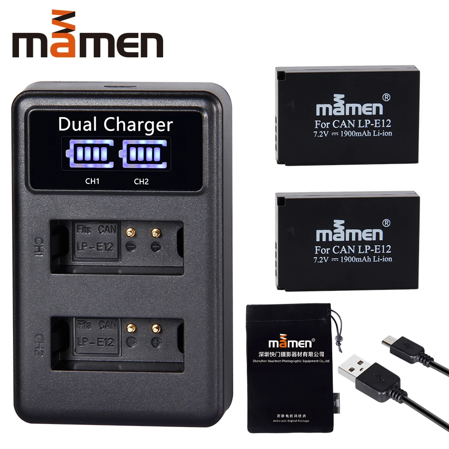 Product Name: 1900mAh akumulator LP E12 LPE12 LP E12 bateria aparatu cyfrowego + LCD USB ładowarka do canona 100D pocałunek X7 Rebel SL1 M10 M50 DSLR