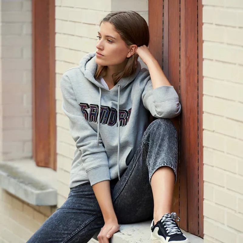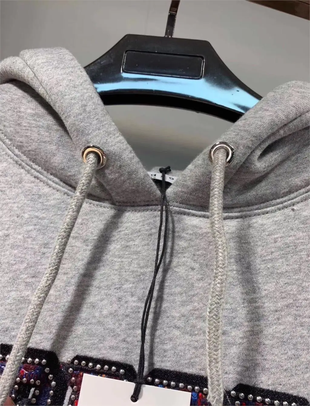 . (Zniżka 30%) Skup 2019 jesienno zimowa nowa bluza z długim rękawem wyszywane litery ozdobiony paciorkami damski bawełniane bluzy z kapturem Najtaniej Cena.