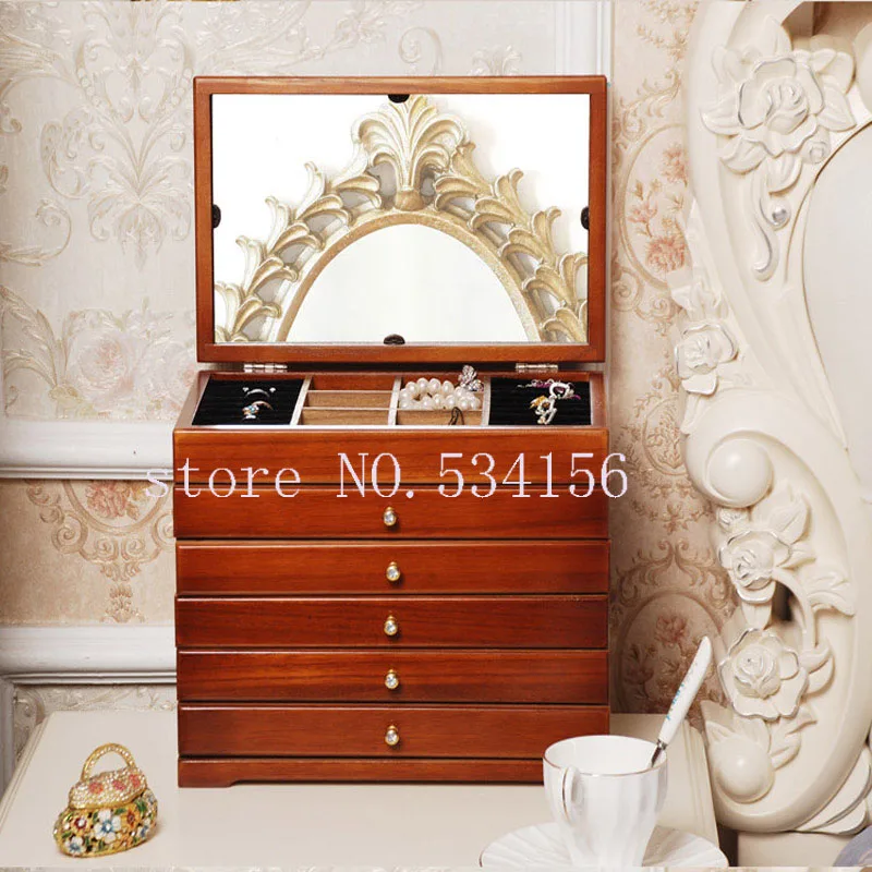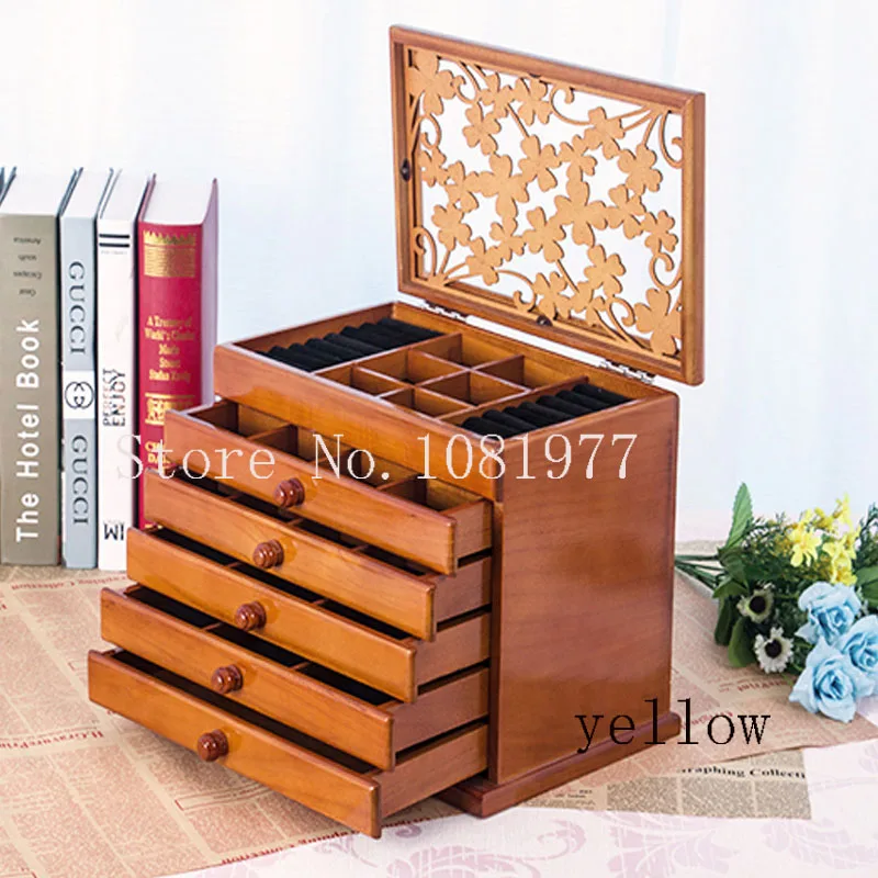 Special Offer Duże 6 pięter drewniane pudełko na biżuterię biżuteria wyświetlacz trumny kolczyki pudełko na pierścionek biżuteria pudełko typu organizer etui na biżuterię pudełko Discount 30% Today!