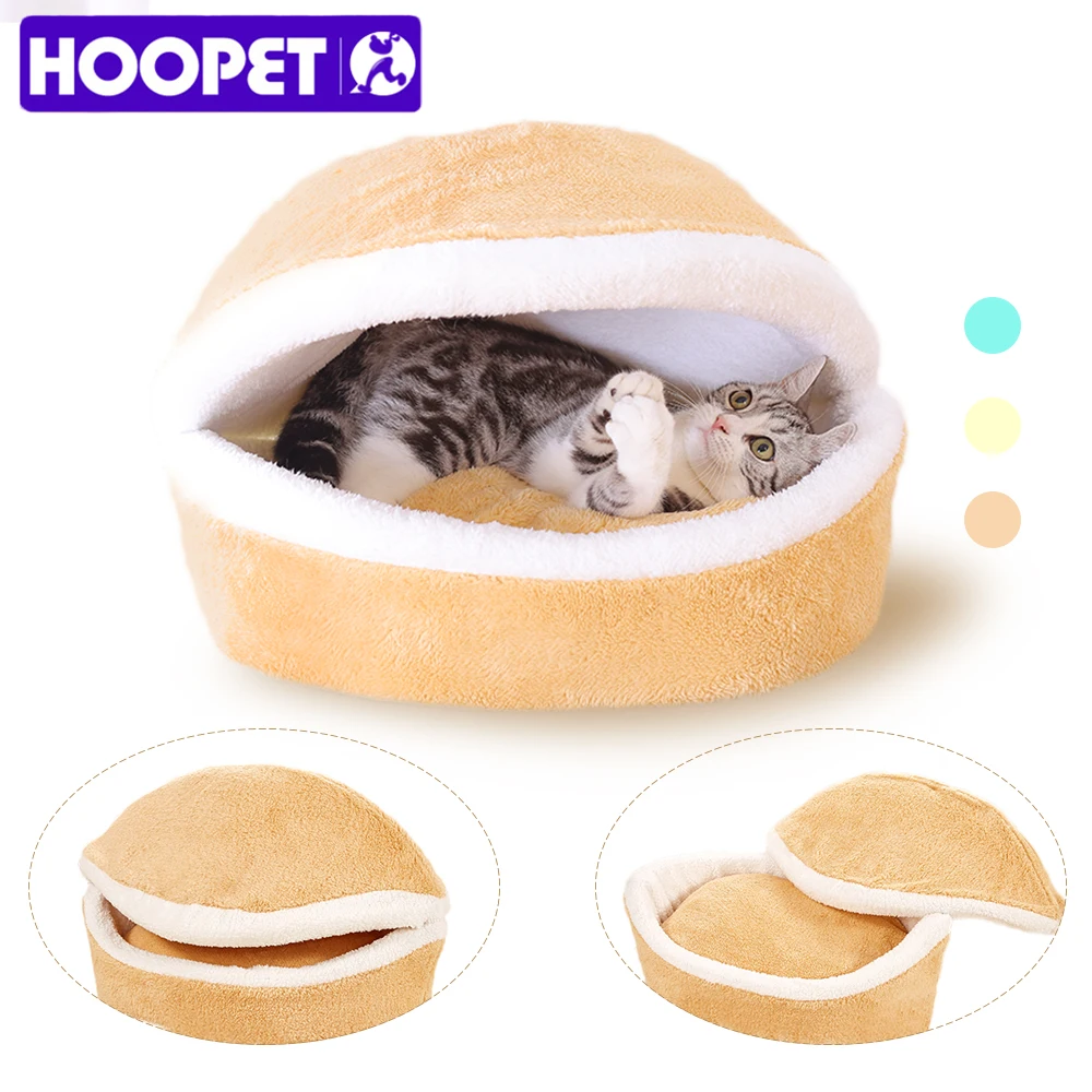 Special Offer HOOPET ciepłe łóżko dla kota dom Hamburger łóżko demontaż wiatroodporny Pet legowisko dla szczeniąt Shell ukrywanie Burger Bun na zimę Discount 30% Today!