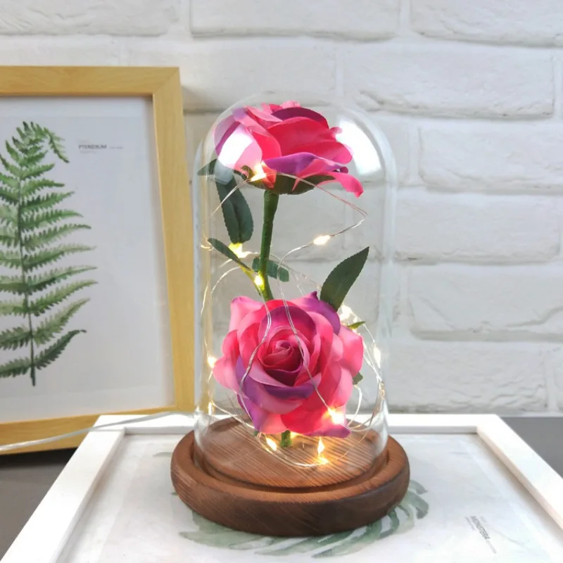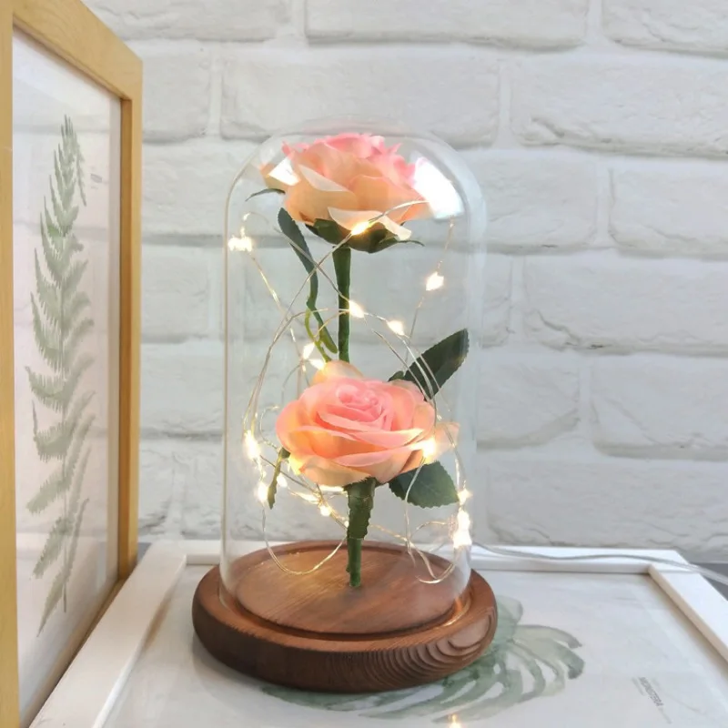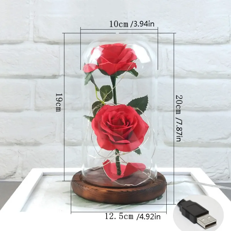 Product Name: USB Silk Rose w szklanej kopule z LED światła ciąg prezent kobiety dziewczyny urodziny walentynki dzień matki dzień święta bożego narodzenia