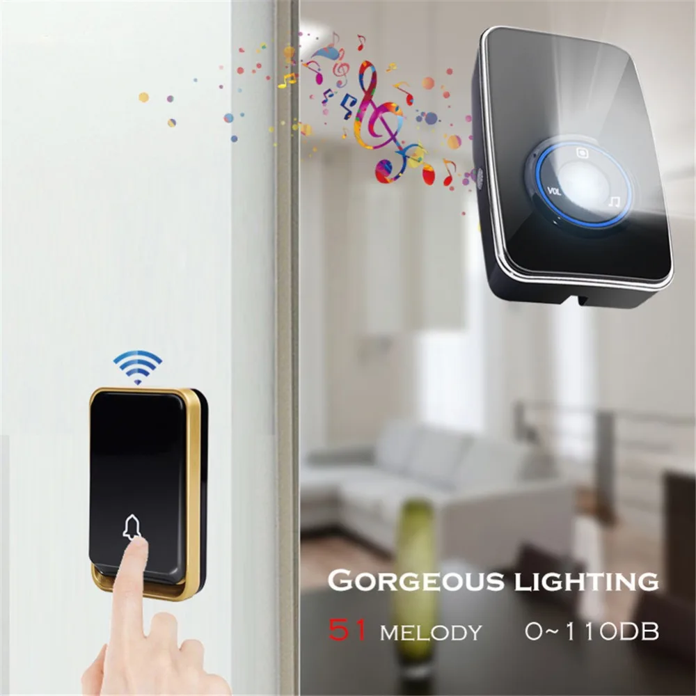 Special Offer SMATRUL EU wtyczka uk us self powered bezprzewodowy dzwonek lampka nocna z czujnikiem brak baterii wodoodporne drzwi dzwonek 1 2 przycisk 1 2 odbiornik Discount 34% Today!