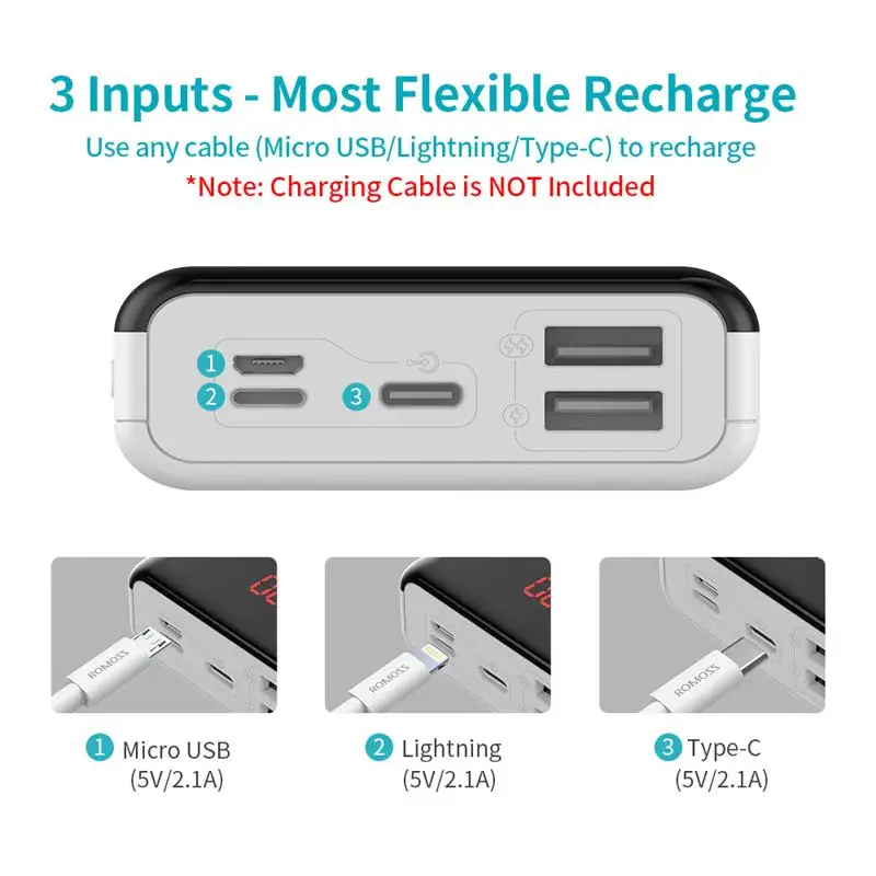 Product Name: 20000mAh ROMOSS LT20 mini powerbank podwójna bateria zewnętrzna USB z wyświetlaczem LED szybka przenośna ładowarka do telefonu Tablet Xiaomi