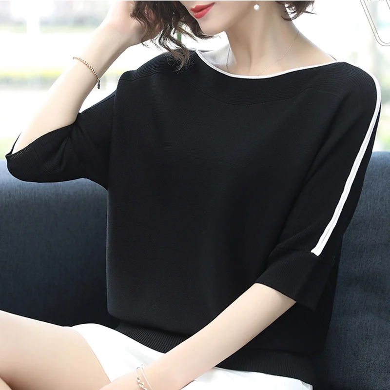 Special Offer Wiosna lato Oversize luźna cienka sweter kobiet dzianinowy top swetry na co dzień pół rękawa duży rozmiar kobiet koreański sweter Discount 36% Today!
