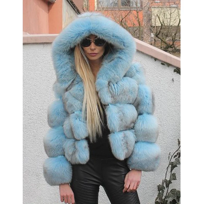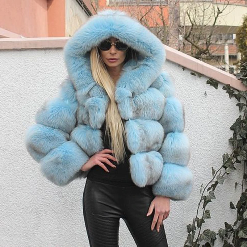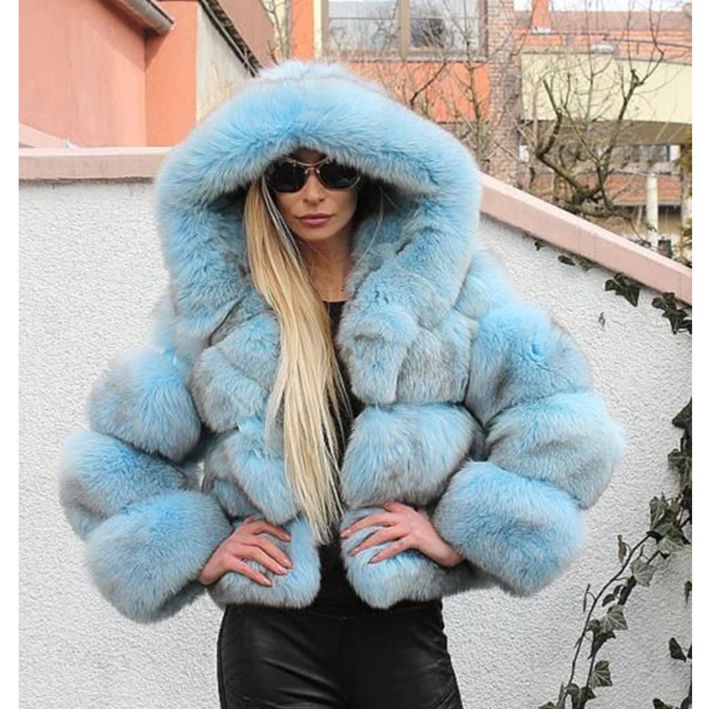 Product Name: FURSARCAR 2019 nowe modne niebieskie naturalne prawdziwe futro z lisów kobiet krótka kurtka zimowa z dużym futrzany kaptur ciepły prawdziwy płaszcz z prawdziwego futra