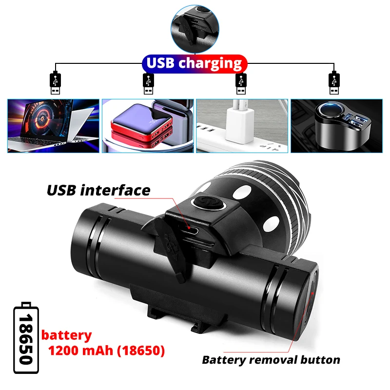 Product Name: 2400mAh LED światła rowerowe przednie światła USB akumulator tylne światło 3 tryby reflektor z LED lampa rowerowa cykl latarka na rower
