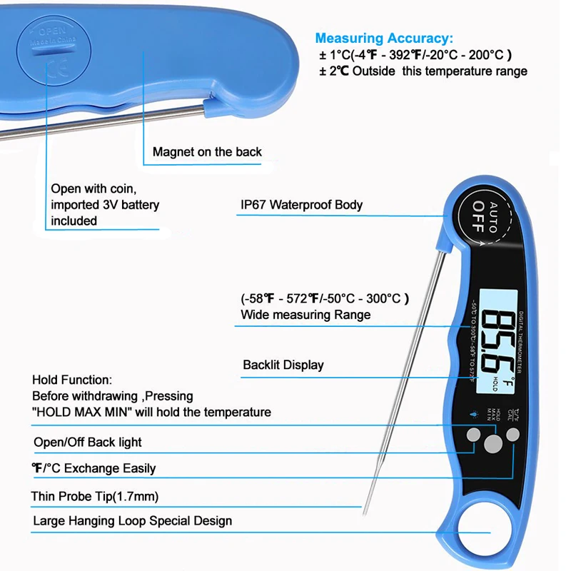 . (Zniżka 50%) Skup Tanie Cyfrowy termometr do mięsa najlepszy wodoodporny termometr do natychmiastowego odczytu z funkcją kalibracji i podświetlenia termometr do żywności Ceny.