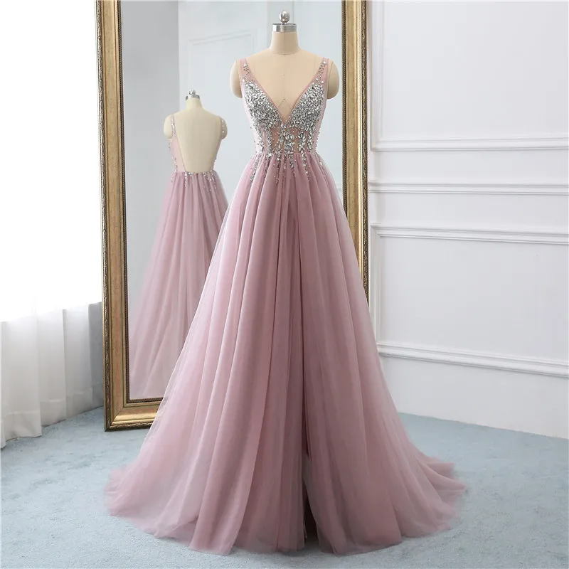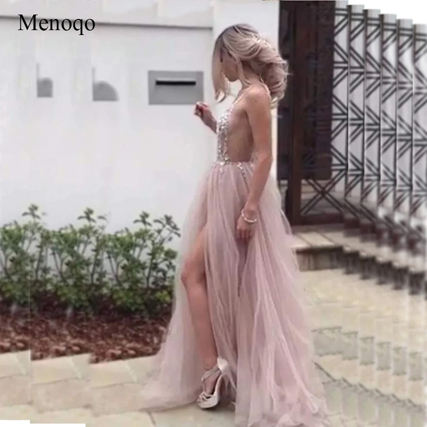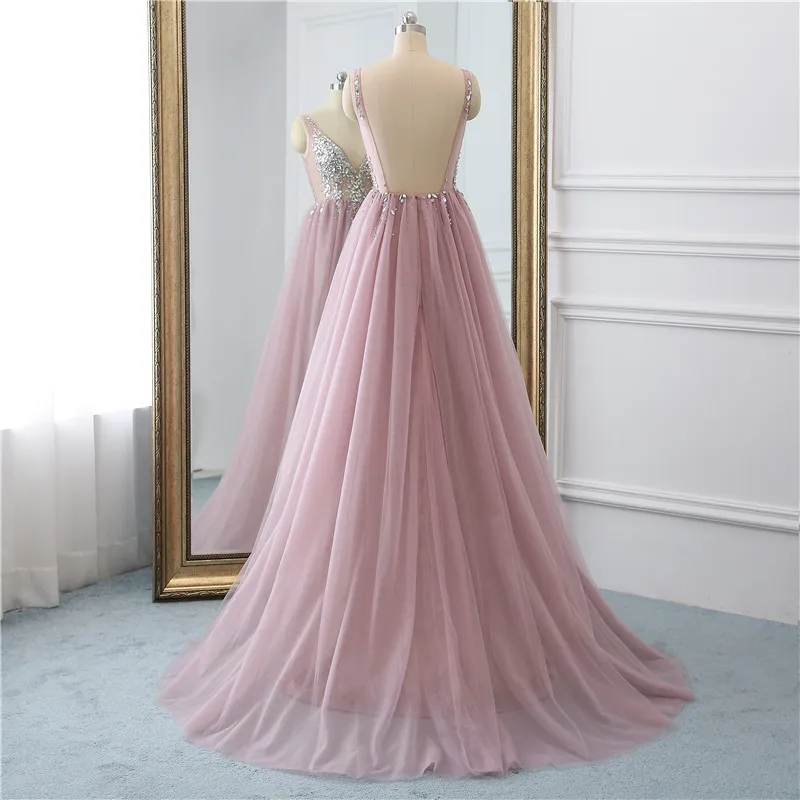 Product Name: Sexy Tulle długie sukienki balowe 2019 New Arrival Backless Sweep pociąg zroszony linia specjalna okazja suknie wieczorowe Custom Made