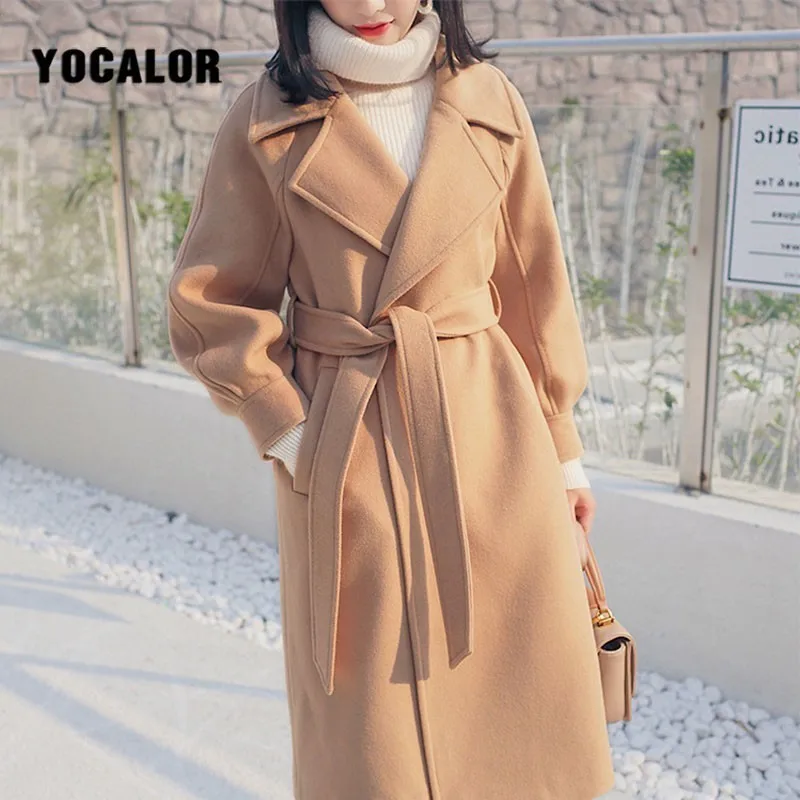 Special Offer Plus rozmiar luźna ciepła wełna mieszanki długi płaszcz zimowy skręcić w dół kołnierz regulowany pasek płaszcze z wełny kobiety odzież do pracy biurowej elegancka Discount 54% Today!
