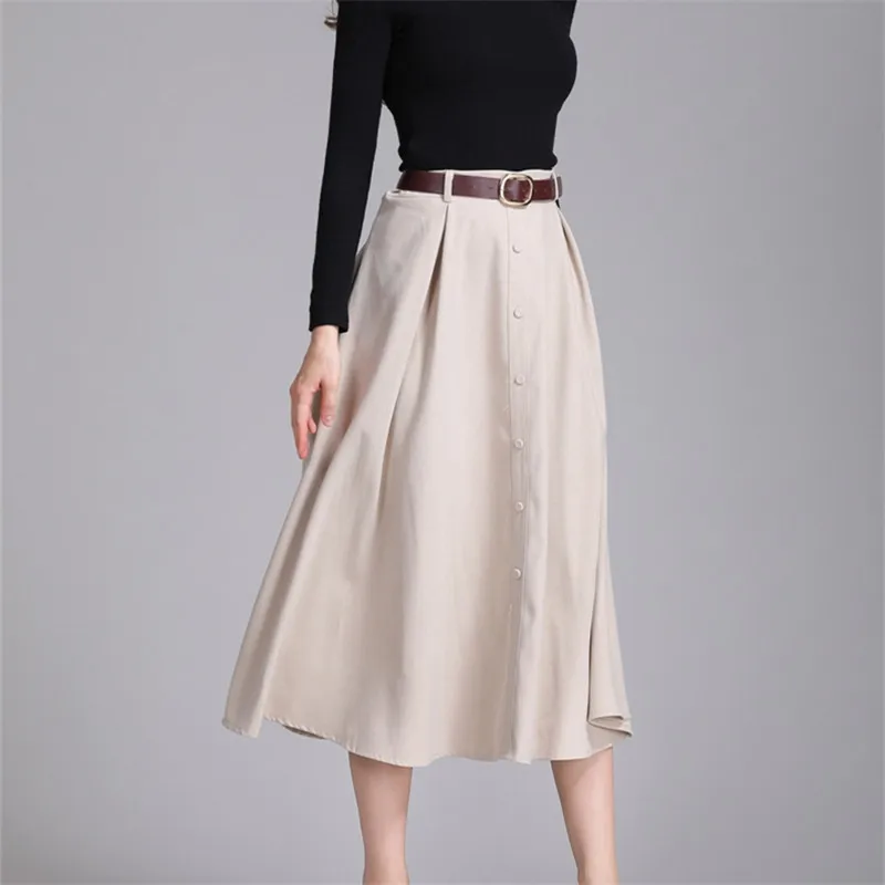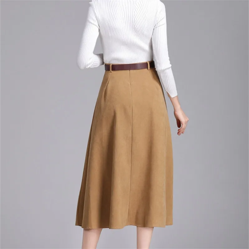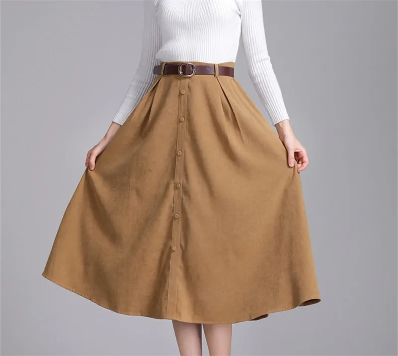 . (Zniżka 56%) Skup Colorfaith nowy 2018 Suede kobiety długa spódnica trzy czwarte jesień zima panie pasek w stylu vintage przyciski spódnica wysokiej talii Femininas SK6679 Najtaniej Ceny.