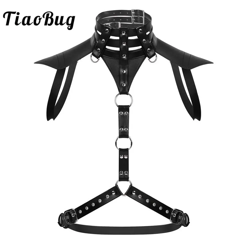 Special Offer TiaoBug mężczyźni czarny uprząż ze sztucznej skóry pas metalowe pierścionki męskie Halter ciało Punk Gothic krótki top gorąca, seksowna BDSM Bondage kostium wrony Discount 31% Today!