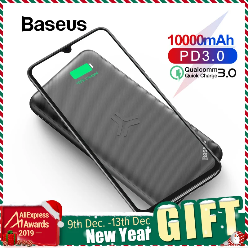 . (Zniżka 37%) Tanie Baseus 10000mAh Power Bank Qi ładowanie wireless dla iPhone 11 Pro Max Samsung Powerbank szybkiego ładowania USB PD Slim bateria zewnętrzna Ceny.