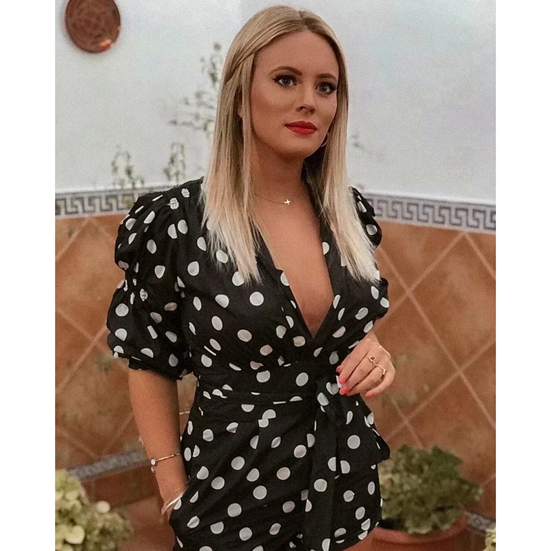 Special Offer Chic kobiet Polka Dot drukuj moda Za czarny przebrania 2019 lato w stylu Vintage z długim rękawem wysokiej talii z paskiem krótki kombinezon femme Discount 48% Today!